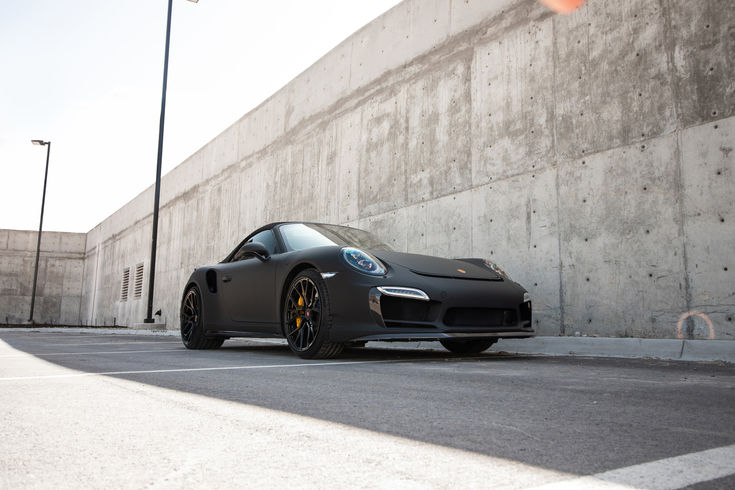 On this Porsche Turbo S we did a complete wrap in '3M Matrix Black'. We also replaced the factory front and rear bumpers with Vorsteiner VR-T Edition bumpers as well as installed a set of Vossen EVO-6TR's.